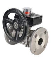 Кран шаровой DN.ru BV3232P(3pc)-FP-F-ISO-H Ду25 Ру40 трехсоставной из нержавеющей стали SS316, фланцевый, уплотнение - PTFE, полнопроходной с ISO-фланцем и редуктором DN.ru HGB RQN1-180Z с индикатором положения с сертификатами качества. Доставка. Гарантия. В наличии! Звоните!