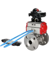 Кран шаровой DN.ru BV3232P(3pc)-FP-F-ISO-H Ду65 Ру25, трехсоставной полнопроходной фланцевый, нержавеющая сталь SS316, уплотнение - PTFE, с пневмоприводом PA-DA-105 двойного действия, с пневмораспределителем 4V320-10 220В, с БКВ APL-210N с сертификатами качества. Доставка. Гарантия. В наличии! Звоните!