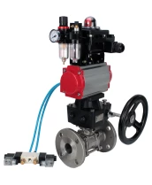 Кран шаровой DN.ru BV3232P(3pc)-FP-F-ISO-H Ду100 Ру16, трехсоставной полнопроходной фланцевый, нержавеющая сталь SS304, PTFE, с пневмоприводом PA-DA-130, пневмораспределителем 4V320-08 220В, БКВ APL-410N EX, ручным дублером MON3-700-T38-ISO, БПВ AFC2000 с сертификатами качества. Доставка. Гарантия. В наличии! Звоните!
