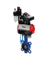 Затвор дисковый поворотный DN.ru WBV1413E-2W-Fb-H Ду65 Ру16, корпус - чугун GGG50, диск - чугун GGG40, уплотнение - EPDM, с пневмоприводом DN.ru PA-DA-065 двойного действия, пневмораспределителем 4М310-08 24В NAMUR, БКВ APL-210N, БПВ AFC2000