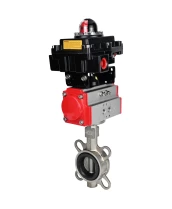 Затвор дисковый поворотный DN.ru WBV3232V-2W-Fb-H Ду200 Ру16, корпус - нержавеющая сталь 316L, диск - нержавеющая сталь 316L, уплотнение - Viton, с пневмоприводом PA-SA-160 с возвратными пружинами, с БКВ APL-410N EX