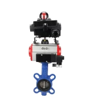 Затвор дисковый поворотный DN.ru WBV1413E-2W-Fb-H Ду50 Ру16, корпус - чугун GGG50, диск - чугун GGG40, уплотнение - EPDM, с пневмоприводом DN.ru PA-DA-065 двойного действия, пневмораспределителем 4М310-08 24В NAMUR, БКВ APL-410N EX