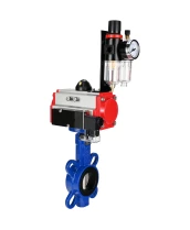 Затвор дисковый поворотный DN.ru WBV1432N-2W-Fb-H Ду40 Ру16, корпус - чугун GGG50, диск - нержавеющая сталь 316L, уплотнение - NBR, с пневмоприводом DN.ru PA-DA-052 двойного действия, пневмораспределителем 4М310-08 220В NAMUR, БПВ AFC2000