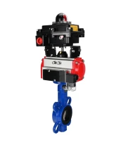 Затвор дисковый поворотный DN.ru WBV1432N-2W-Fb-H Ду40 Ру16, корпус - чугун GGG50, диск - нержавеющая сталь 316L, уплотнение - NBR, с пневмоприводом DN.ru PA-DA-052 двойного действия, пневмораспределителем 4М310-08 220В NAMUR, БКВ APL-410N EX