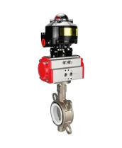 Затвор дисковый поворотный DN.ru WBV3232P-2W-Fb-H Ду40 Ру16, корпус - нержавеющая сталь 316L, диск - нержавеющая сталь 316L, уплотнение - PTFE, с пневмоприводом PA-DA-083 двойного действия, с БКВ APL-510N EX