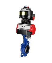 Затвор дисковый поворотный DN.ru WBV1432E-2W-Fb-H Ду50 Ру16, корпус - чугун GGG50, диск - нержавеющая сталь 316L, уплотнение - EPDM, с пневмоприводом DN.ru PA-DA-065 двойного действия, пневмораспределителем 4М310-08 24В NAMUR, БКВ APL-510N-EX