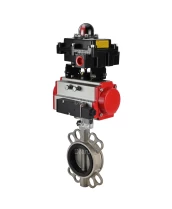 Затвор дисковый поворотный DN.ru WBV3232V-2W-Fb-H Ду50 Ру16, корпус - нержавеющая сталь 316L, диск - нержавеющая сталь 316L, уплотнение - Viton, с пневмоприводом PA-DA-065 двойного действия, с пневмораспределителем 4V320-10 220В, с БКВ APL-410N EX