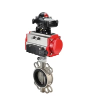 Затвор дисковый поворотный DN.ru WBV3232V-2W-Fb-H Ду65 Ру16, корпус - нержавеющая сталь 316L, диск - нержавеющая сталь 316L, уплотнение - Viton, с пневмоприводом PA-DA-065 двойного действия, с пневмораспределителем 4V320-10 220В, с БКВ APL-210N