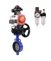 Затвор дисковый поворотный DN.ru WBV0232E-2W-Fb-H Ду32 Ру16, корпус - алюминиевый сплав, диск - нерж.сталь 316L, EPDM, с пневмоприводом PA-DA-065, с пневмораспределителем 4V320-08 220В, с БКВ APL-410N EX, с ручным дублером MON1-250-T26-ISO, с БПВ AFC2000