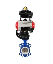 Затвор дисковый поворотный DN.ru WBV3432P-2W-Fb-H Ду80 Ру16,корпус - углеродистая сталь WCB, диск - нержавеющая сталь 316L, PTFE, с пневмоприводом PA-DA-083, с пневмораспределителем 4V320-08 220В, с БКВ APL-410N EX, с ручным дублером MON2-450-T28-ISO Пермь